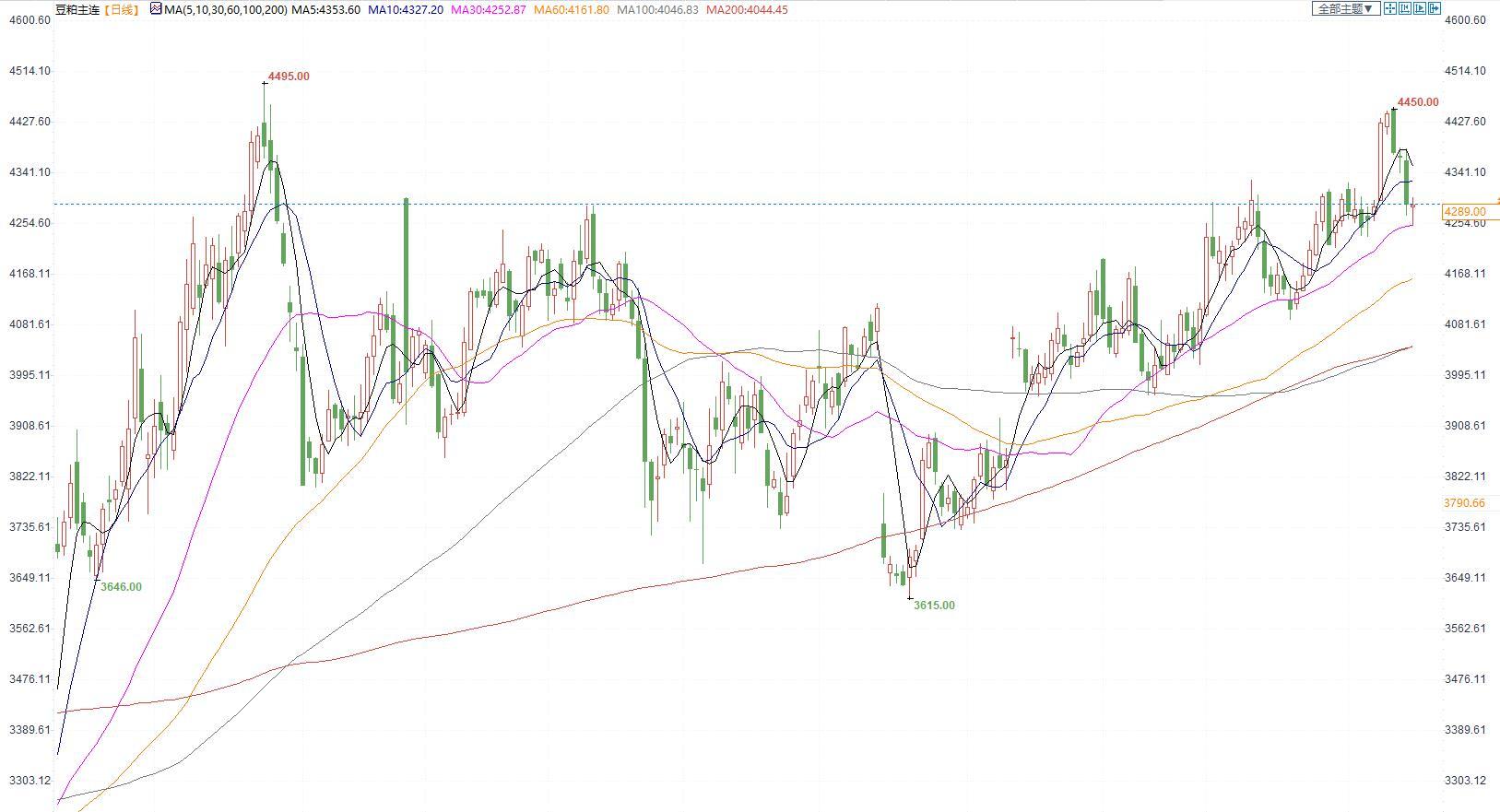 豆粕:美豆短期高位盘整,豆粕近月下方空间有限