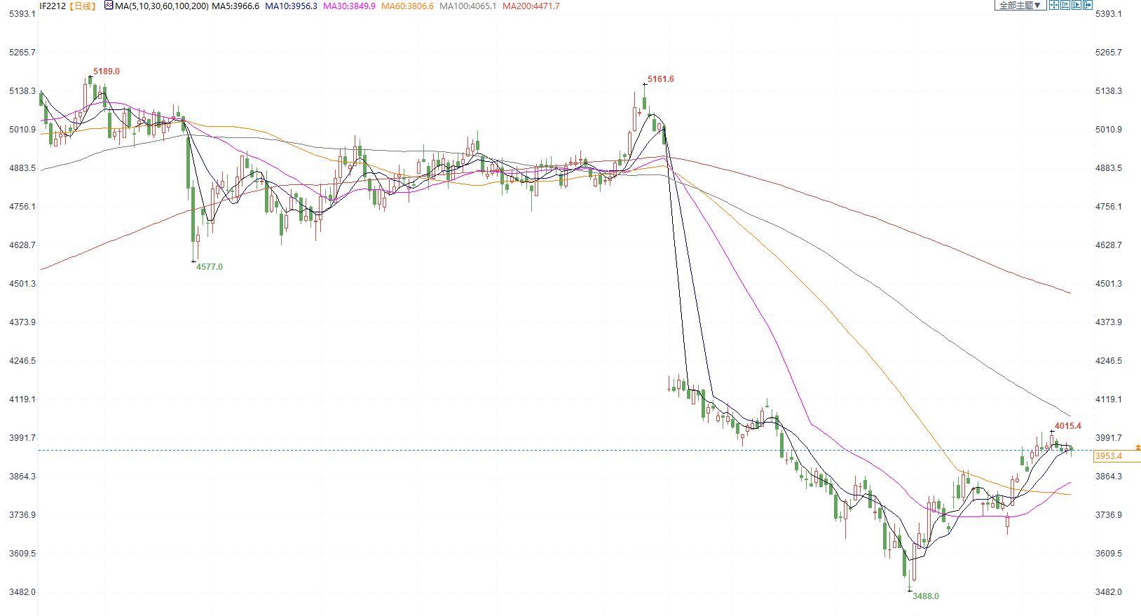 【今日涨跌】四大期指涨跌互现。IH2212收盘价为2676.2,收跌0.45%;IF2212收盘价为3953.4,收跌0.09%;IC2212收盘价为6100.0,收跌0.02%;IM2212收盘价为6600.6,收涨0.54%。