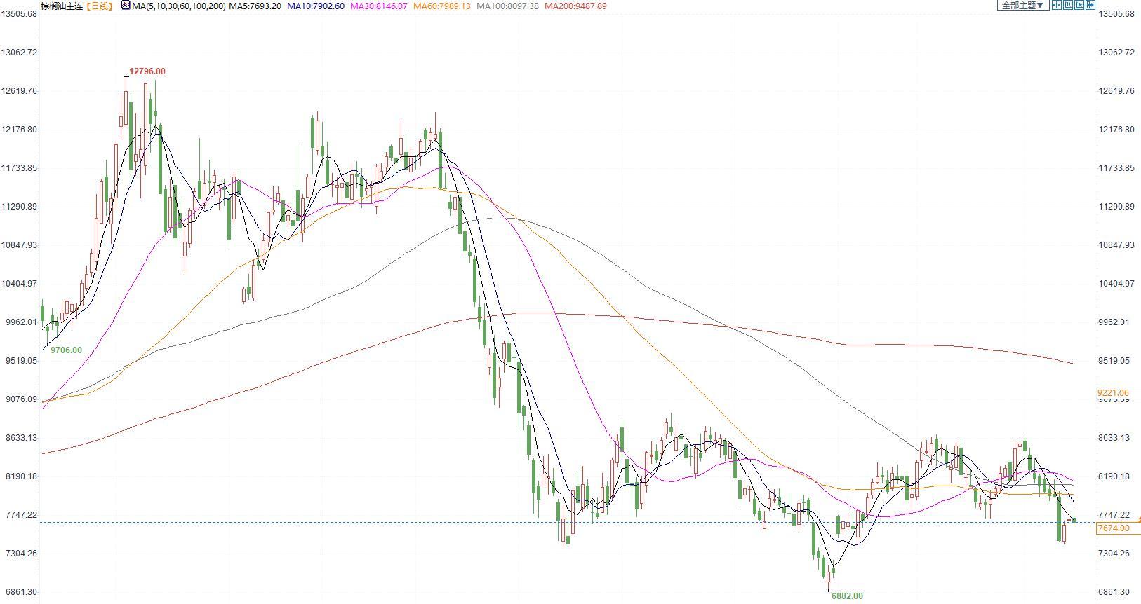 棕榈油2305合约日内跌0.28%,收盘7876元/吨;广州市场棕榈油7700元/吨。