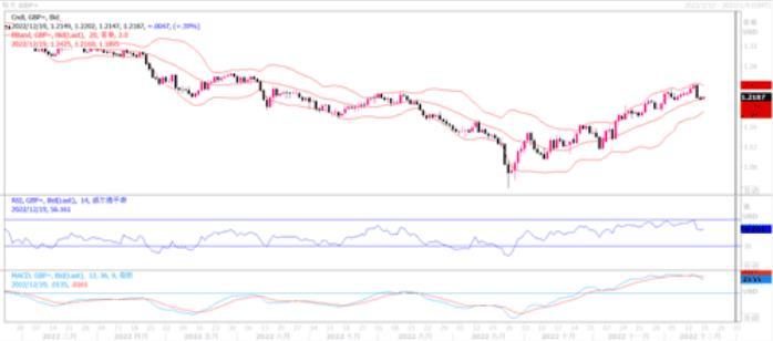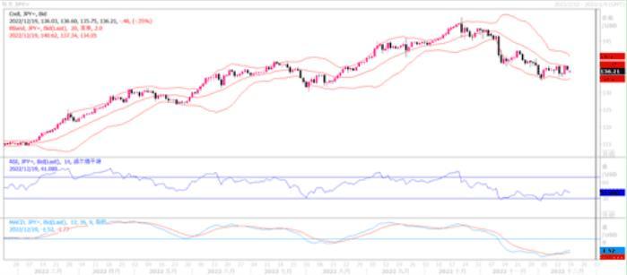 上周五(12月16日),美元兑日元高位遇阻回落,日跌幅0.76%,日低去抵136.29,收盘于136.72。因为在本周,日本央行将召开今年最后一次利率决议。对于日银货币政策,日本央行前副行长YAMAGUCHI发表讲话称,如果日本经济能够抵御海外经济风险,日本央行必须准备好明年调整收益率曲线控制。这有可能代表说日本央行此次会议上会就明年进行政策评估给出些信息出来。为此,在会议之前,日元颇有传闻前买入的味道。从日线图上观察,美元兑日元继续维持一种区间横盘震荡的形态,波动区间主要集中于135-138之间,技术指标也呈中性,指向不明朗。暂时还是难以期盼该货币对走出明显的趋向性交易路径。继续保持区间横盘震荡走势来对待该货币对的交易处理。