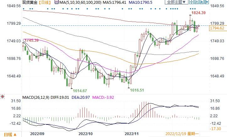 RJO期货公司高级市场策略师Frank?Cholly表示:“美联储还没有推出暂停,但它正在将脚从天然气上挪开,这应该有助于金价巩固在1800美元左右?!?br>