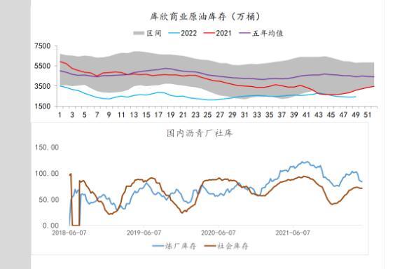 供应端:据美国能源信息署最新数据显示,截止2022年12月15日当周,包括战略储备在内的美国原油库存总量80640万桶,比前一周上升548.3万桶;美国商业原油库存42412.9万桶,比前一周上升1023.1万桶;战略原油库存量38227.1万桶,比上一周下降474.8万桶;美国汽油库存总量22358.3万桶,比前一周上升449.6万桶。商业原油库存比去年同期低0.97%,比过去五年同期低6.54%;汽油库存比去年同期低2.29%,比过去五年同期低约2.52%;馏分油库存比去年同期低2.90%,比过去五年同期低8.06%。