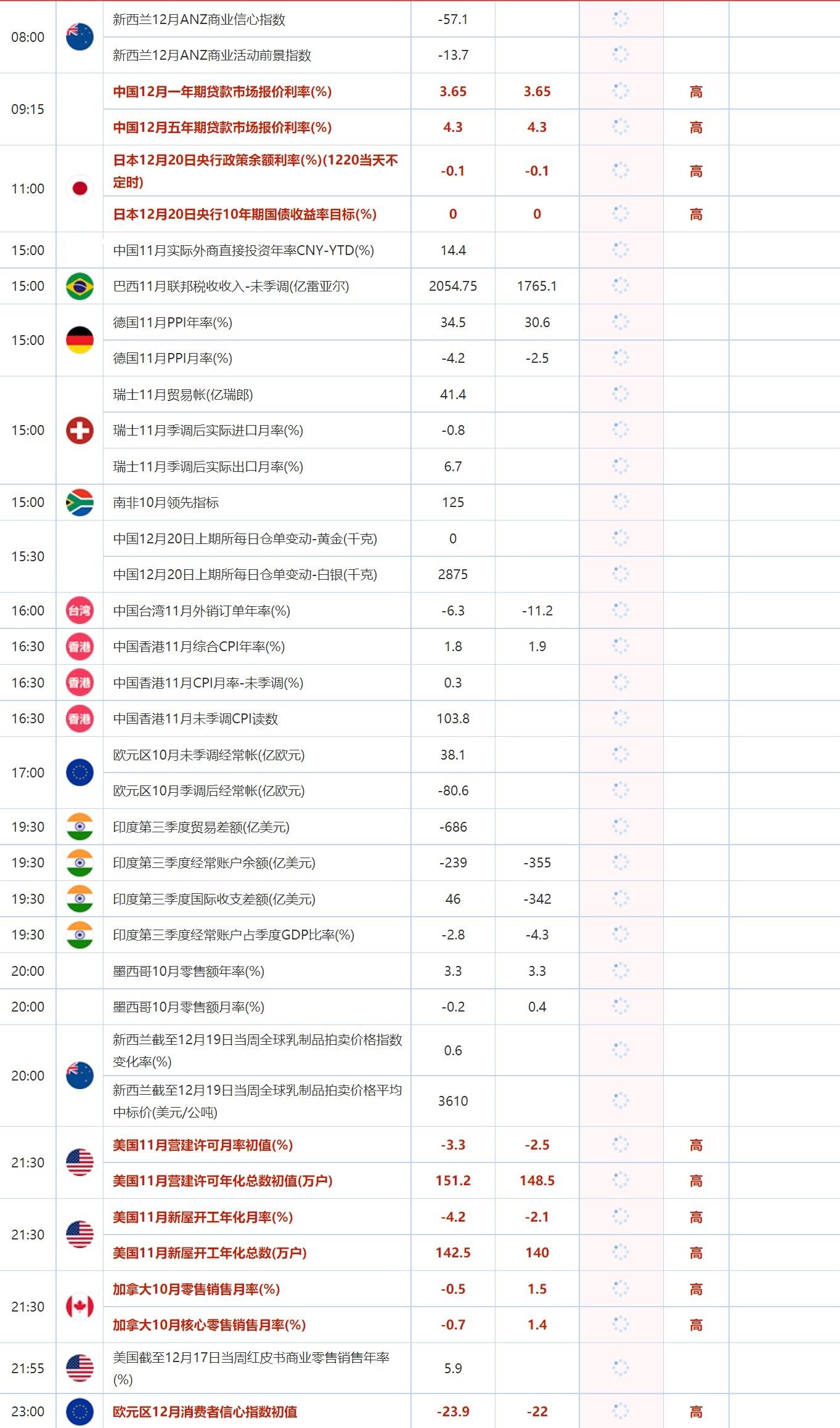 09:15?中国12月一年期贷款市场报价利率(%)?,?前值?3.65?,?预期值?3.65?,?公布值:待发布
