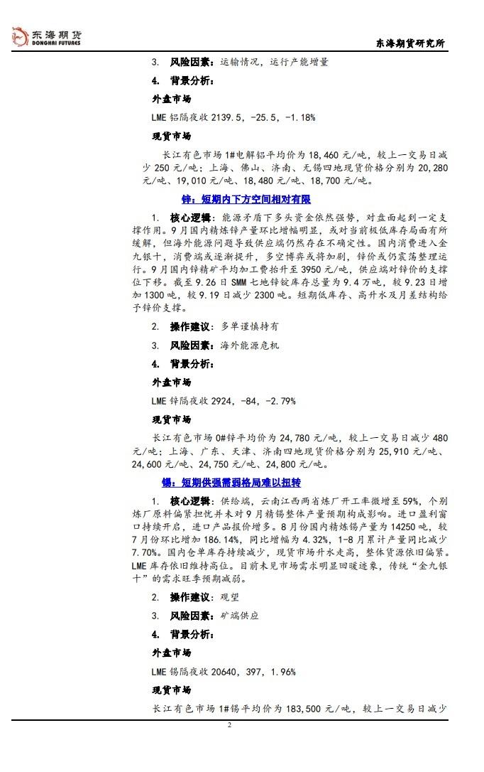 标题:【东海期货9月27日产业链日报】有色篇:宏观利空压制铜价,基本面也有转势迹象