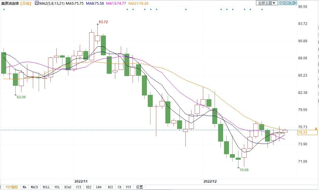 北京时间12月21日13:56,WTI价格报76.35美元/桶