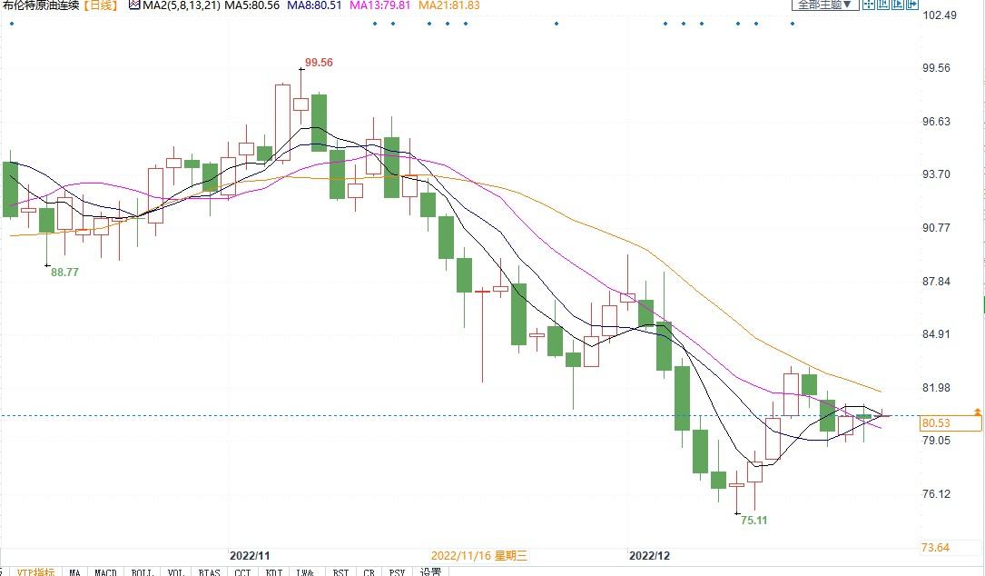 北京时间12月21日13:13,布伦特原油主力合约价格报80.43美元/桶。