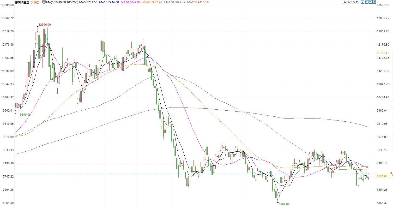 棕榈油2305合约日内涨0.62%,收盘7846元/吨;广州市场棕榈油7590元/吨。