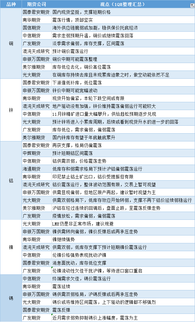 标题:期货公司观点汇总一张图:12月22日有色系(铜、锌、铝、镍、锡等)