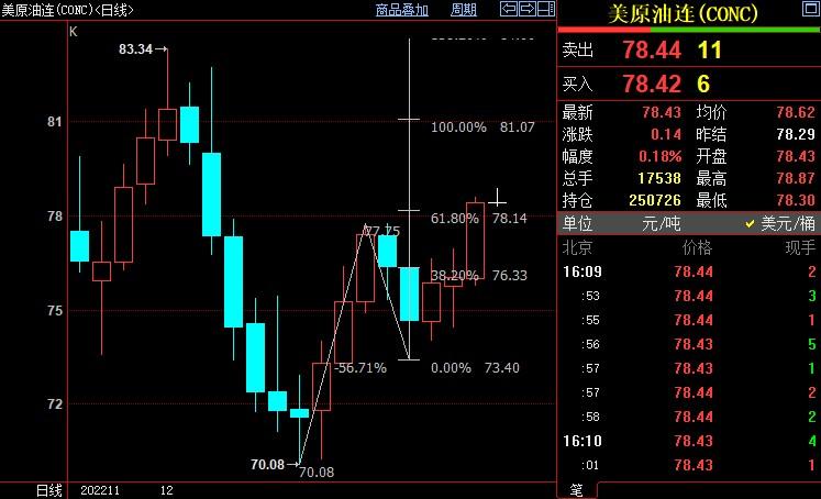 北京时间16:18,NYMEX原油期货上涨0.47%至78.66美元/桶;ICE布伦特原油期货上涨0.31%至82.84美元/桶。NYMEX原油创12月5日以来新高至78.87美元/桶。