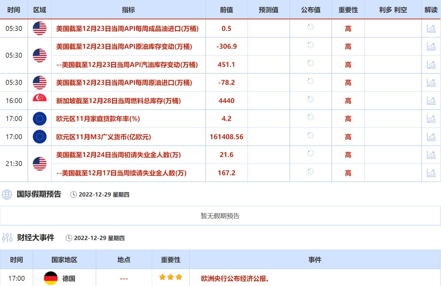 ④12月29日(周四)关键字:美国截至12月23日当周API原油库存变动,美国初请失业金人数,欧洲央行经济公报?