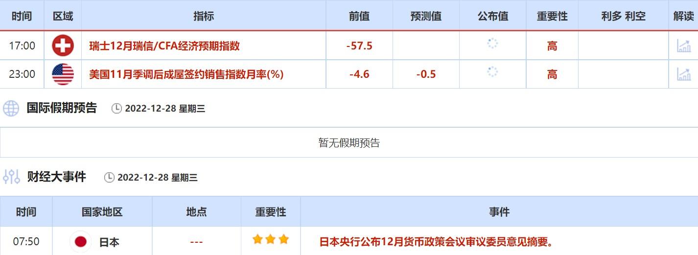 ③12月28日(周三)关键字:美国11月季调后成屋签约销售指数,日银货币政策会议审议委员意见摘要