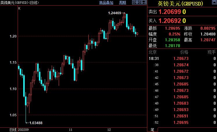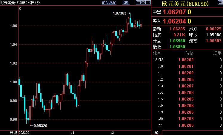 欧元兑美元上涨0.21%至1.0611。欧元区12月消费者信心指数小幅上升,自前值-23.9升至-22.2。但值得注意的是,欧洲央行上调利率和通胀高企堪忧表明欧元区处在经济衰退的困境。