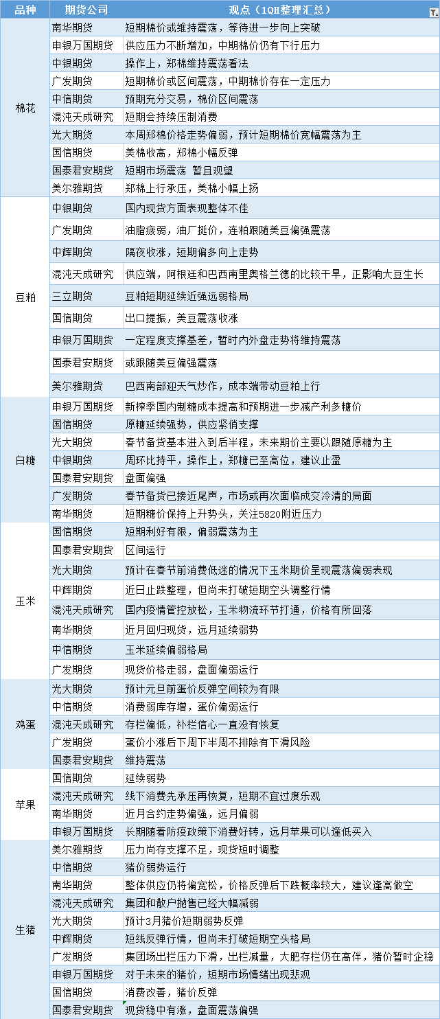 标题:期货公司观点汇总一张图:12月26日农产品(棉花、豆粕、白糖、玉米、鸡蛋、生猪等)