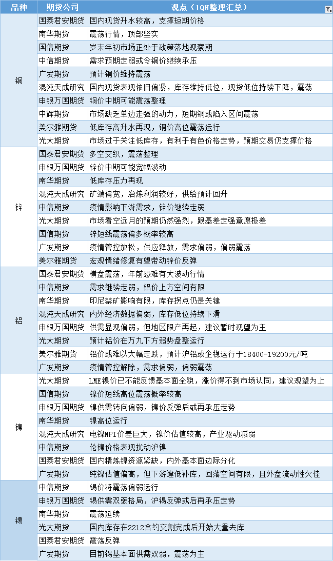 标题:期货公司观点汇总一张图:12月26日有色系(铜、锌、铝、镍、锡等)