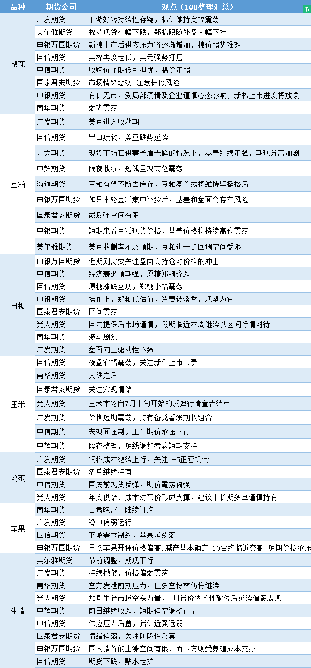 期货公司观点汇总一张图:9月27日农产品(棉花、豆粕、白糖、玉米、鸡蛋、生猪等)