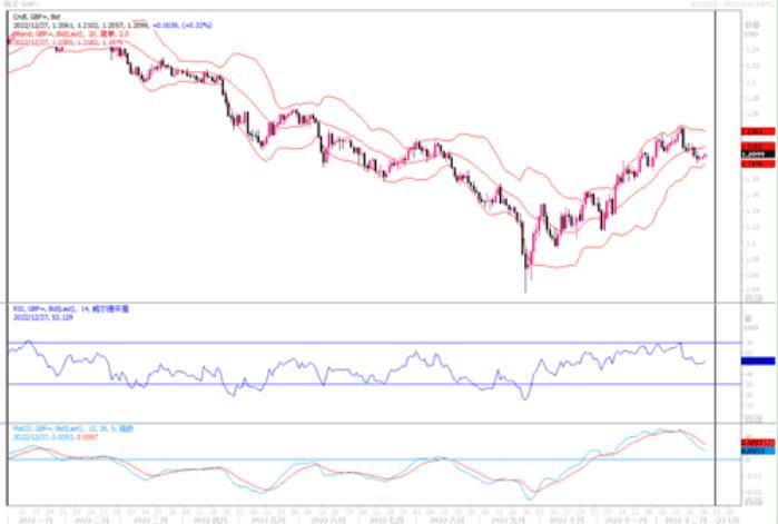周一(12月26日),欧元对美元涨幅0.21%,收盘于1.0636,盘中最高1.0640。欧洲央行管委诺特周一表示,“欧洲央行的紧缩周期仅过半,未来需要长期坚持当前的QT政策以遏制高通胀。而从现在起到2023年7月我们将计划举行五次政策会议,预计将在借贷成本于明年夏季达到顶峰之间加息50个基点,实现相当不错的紧缩步伐。近期,欧央行个管委们紧锣密鼓地发声表示坚决紧缩的态度给与了欧元一定的支撑。但在年关和新年来临之际,欧元对美元整体上还是处于窄幅波动状态,波动区间还是脱离不了1.0570-1.0660之间,上方1.0700更是构成了暂时的重大阻力。若想有大的明确走势方向,只怕要等待元旦之后了!