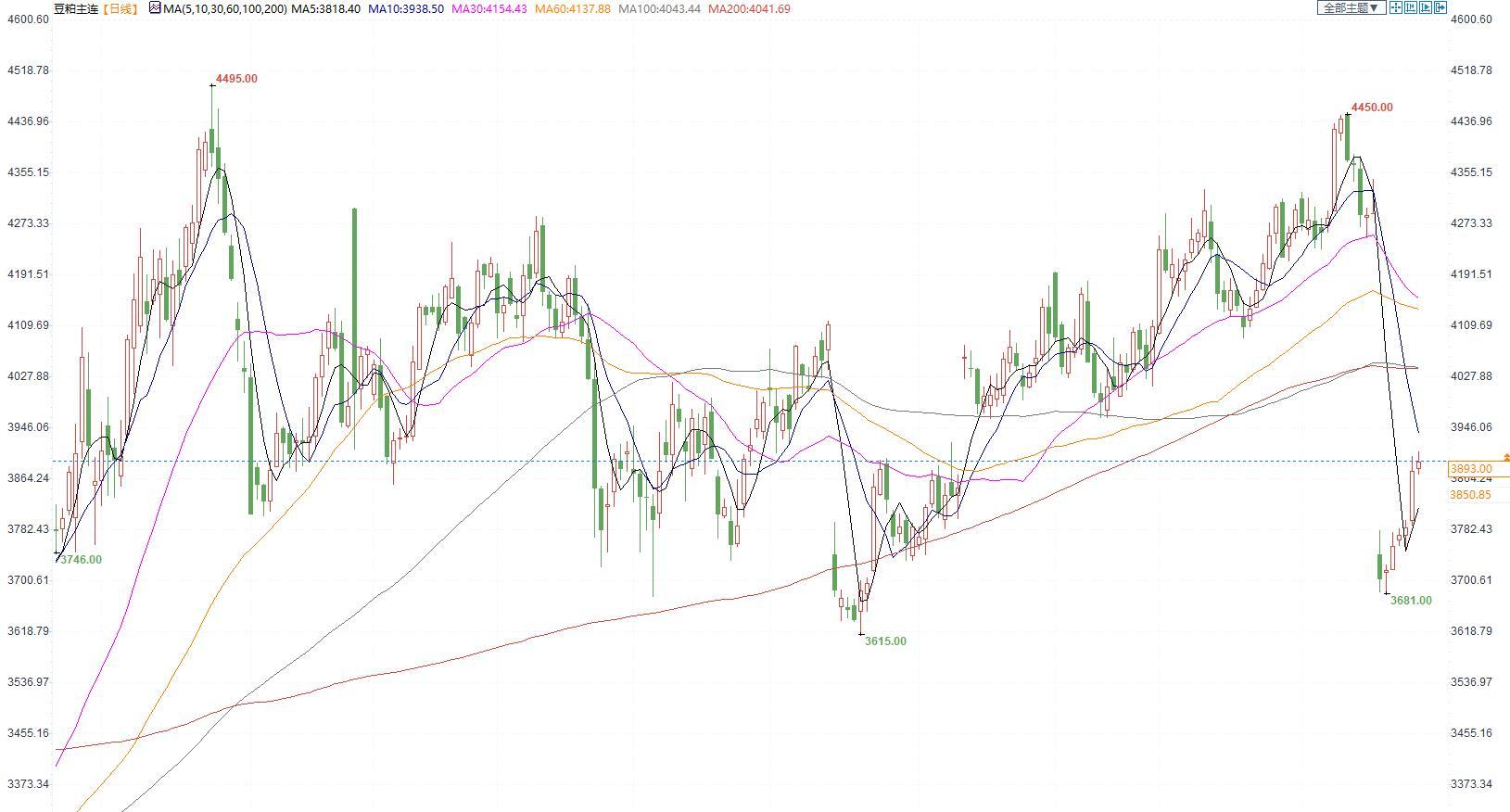 豆粕2305合约日内涨1.06%,收盘价3893元/吨,现货张家港43%蛋白豆粕4720元/吨