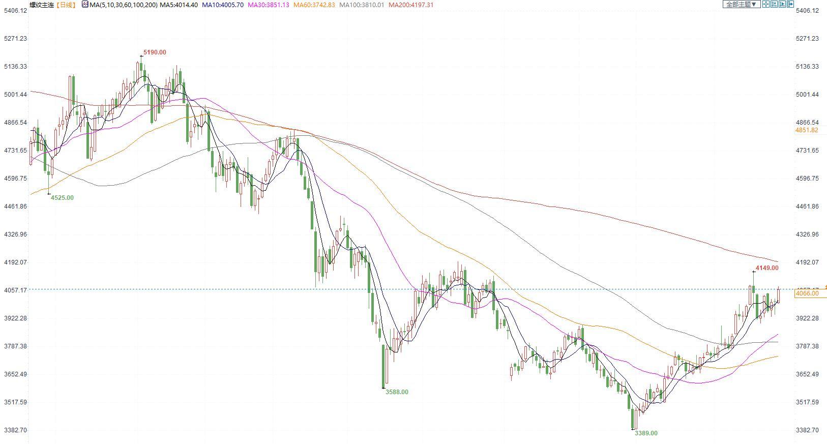价格:螺纹钢2305合约今天震荡缓幅上行,收盘4066元/吨,收涨2.03%。现货价格小幅上涨,上海中天现货价4060元/吨,环比增加20元/吨。