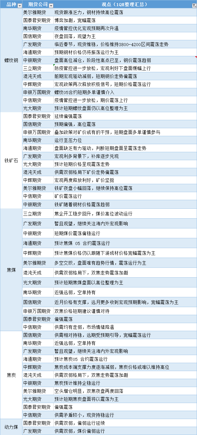 期货公司观点汇总一张图:12月28日黑色系(螺纹钢、焦煤、焦炭、铁矿石、动力煤等)