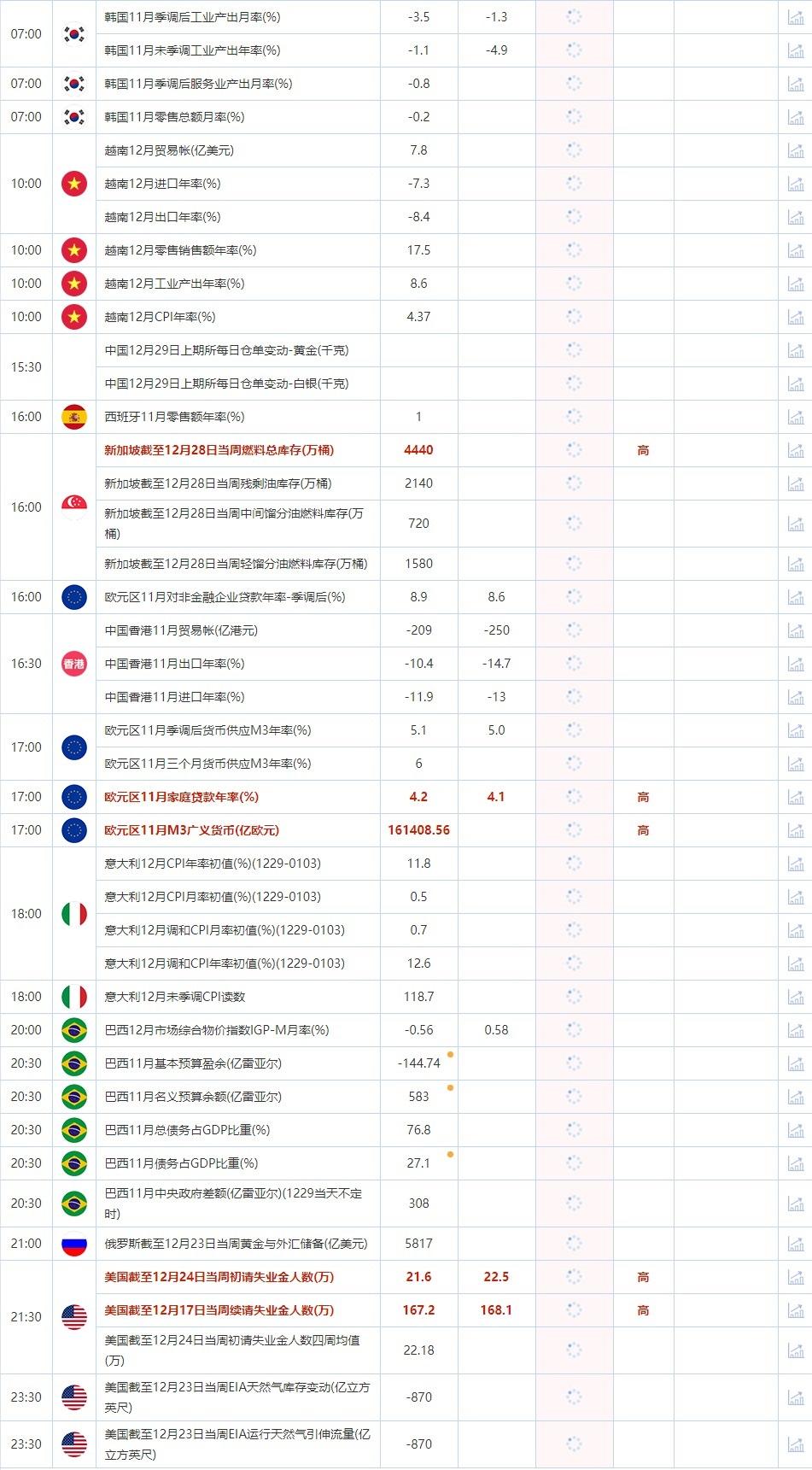 12月29日重点数据和大事件前瞻