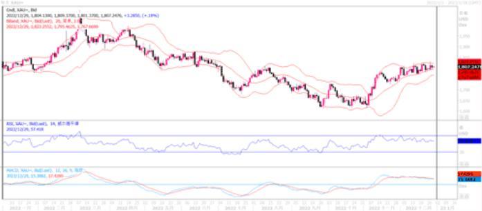 在周三的市场上,隔夜美国10年期国债收益率一度创近一个半月新高至3.862%,这使得前个交易日还大涨的黄金出现获利回吐交易模式的回落,不过整体上还是顽强守住在1800美元之上。由于新年假期前交易活动清淡,且本周没有重要经济数据公布,黄金价格走势受限。在连续四次加息75个基点后,美联储在12月将加息步伐放慢至50个基点。由于美联储加息步伐放缓预期削弱了美元吸引力,金价已从9月底的两年多低点上涨近200美元。然而,美联储主席鲍威尔警告说,美联储明年将进一步加息,欧洲央行在加息紧缩方面的态度坚定,也是抑制了黄金多头的冲动。关键影响元素上,美元表现、通胀数据、美联储加息路径和地缘政治紧张局势将是影响2023年金价的主要因素。而近期美国耐用品需求下降,个人消费支出(PCE)物价指数大幅下滑,增加了美联储提前降息的预期。ING的经济学家一致认为,经济衰退将加速通胀下滑,并将允许美联储在2023年结束前通过降息做出回应。荷兰国际集团经济学家预计:“美联储维持紧缩政策的周期内,金价将保持下行趋势。但美联储在激进加息周期释放放松的任何信号,都将提振金价。要实现这一预期,可能需要通胀出现显著回落的迹象。2023年通胀料将出现大幅回落,这将为美联储在2023年下半年开始降息打开大门。目前对于明年美联储将开始实施宽松政策的预期开始升温,这似乎有利于金价继续展开反弹。就近期来看,1800美元关口的争夺较为激烈,这也是黄金多头和空头都密切关注的水平。