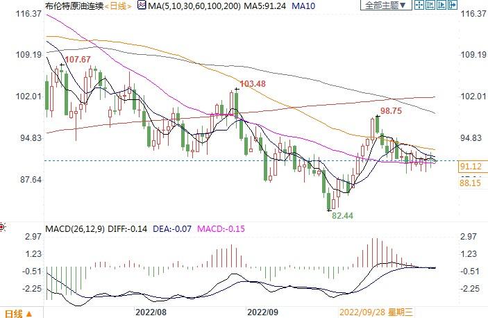 北京时间10月26日13:09,布伦特原油连续报91.12美元/桶