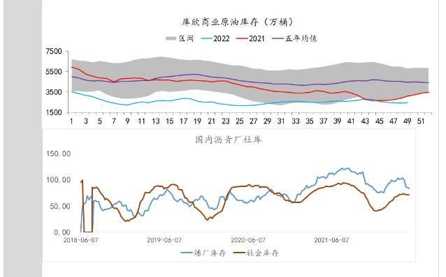 供应端:据美国能源信息署最新数据显示,截止2022年12月23日当周,包括战略储备在内的美国原油库存总量79408万桶,比前一周下降349.6万桶;美国商业原油库存41895.2万桶,比前一周上升71.8万桶;战略原油库存量37862.4万桶,比上一周下降364.7万桶;美国汽油库存总量22300.8万桶,比前一周下降310.5万桶。商业原油库存比去年同期低0.25%,比过去五年同期低7.39%;汽油库存比去年同期低0.16%,比过去五年同期低约4.09%;馏分油库存比去年同期低1.81%,比过去五年同期低7.23%。