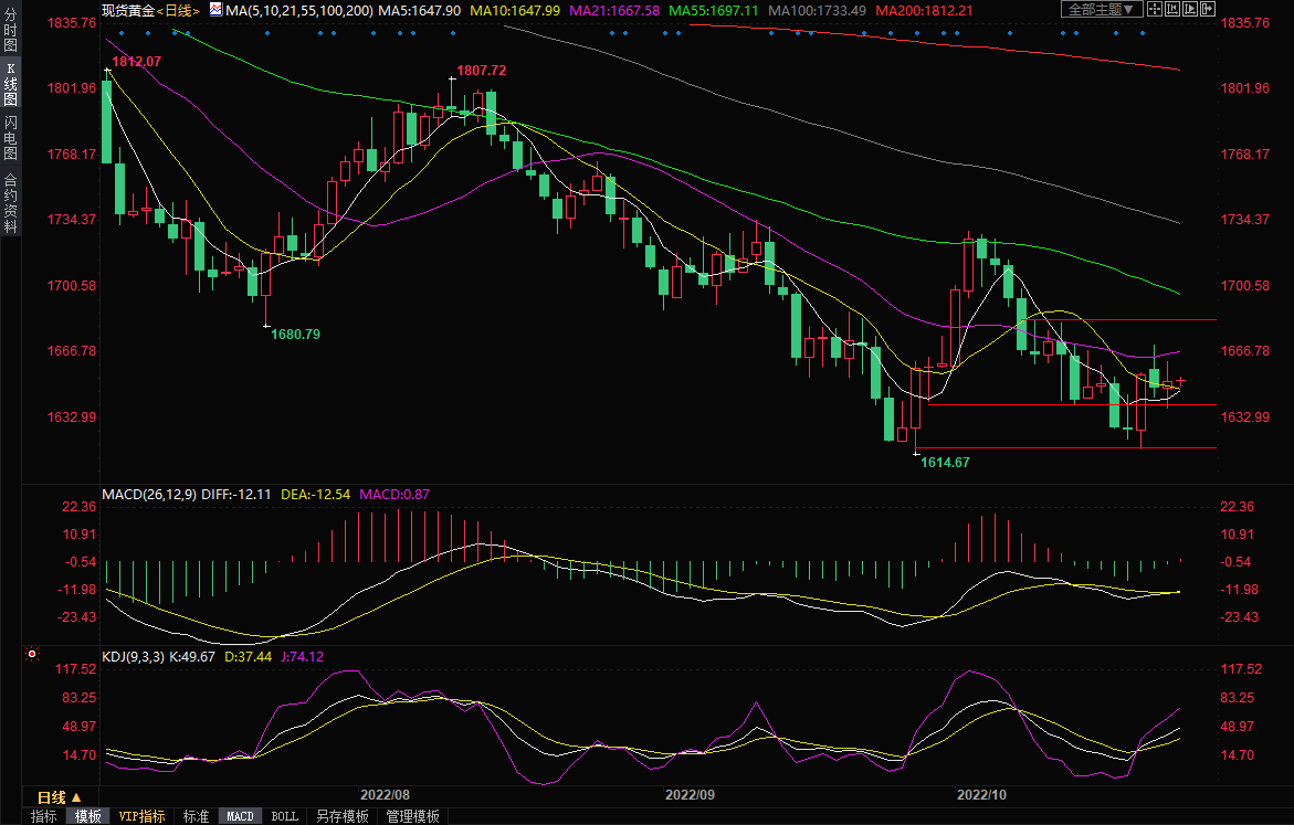 整体来看,目前关于美联储将放缓加息步伐的预期,是市场的关注焦点所在,本周这种预期有所升温,对金价和美债收益率打压明显,在短线给金价提供支撑,如果这种预期进一步升温,将给金价提供进一步反弹动能,上方关注1700整数关口附近阻力;但很显然,美联储放缓加息步伐还需要一段时间,短期而言,本周加拿大央行和欧洲央行、下周美联储和英国央行都将分别加息75个基点,持有黄金的机会成本仍将继续增加,令多头顾忌重重。市场观望情绪也比较浓,投资者需要从利率决议中寻找未来货币政策的进一步线索,这将加剧盘中多空来回拉锯博弈的频率。