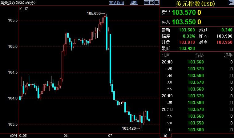 北京时间20:10,现货黄金上涨0.39%至1873.60美元/盎司;COMEX期金主力合约上涨0.47%至1878.4美元/盎司;美元指数下跌0.34%至103.568。