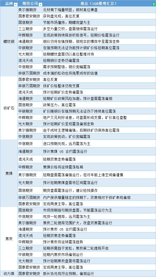 标题:期货公司观点汇总一张图:1月10日黑色系(螺纹钢、焦煤、焦炭、铁矿石、动力煤等)