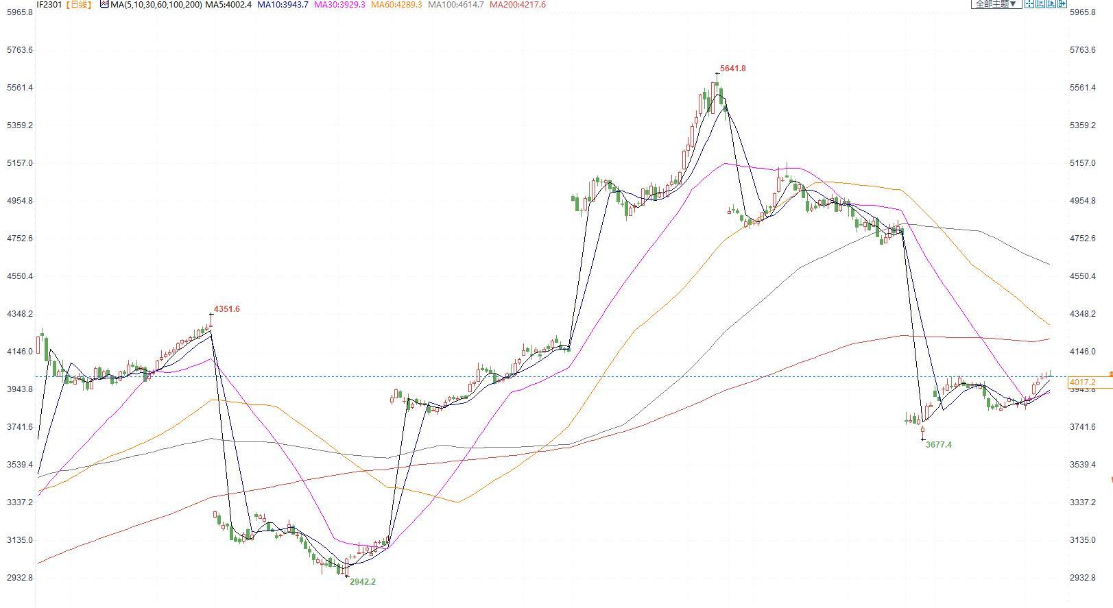 【今日涨跌】四大期指涨跌互现。IH2301收盘价为2739.2,收涨0.03%;IF2301收盘价为4017.2,收跌0.12%;IC2301收盘价为6025.2,收跌0.49%;IM2301收盘价为6494.4,收跌0.62%。