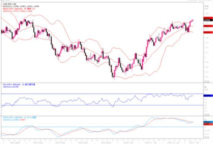 周四早间东京交易阶段,美元/日元东京盘初大幅下跌,从132.41左右最低跌至131.78,走势仍偏下档。在周四早间的,日本读卖新闻指出,日本央行将评估大规模宽松政策的副作用。该则消息,引发投资者对日本央行行将改变当前宽松货币政策的预期。然而,当前市场最聚焦的仍然是今晚美国12月份消费物价指数(CPI),数据升与跌将会在外汇市场上掀起较大波澜。在日线图上,尽管美元兑日元仍处于布林带下轨和下降通道之中,但RSI、MACD等技术指标与价格走势线均似乎有底背离迹象在形成,因此要警惕美元兑日元近期的触底反弹风险。上方若顶穿135,则进一步反弹的目标指向138-140区域。而下方能不能继续走远,则要视130这个关键支撑位置能否被扫清。