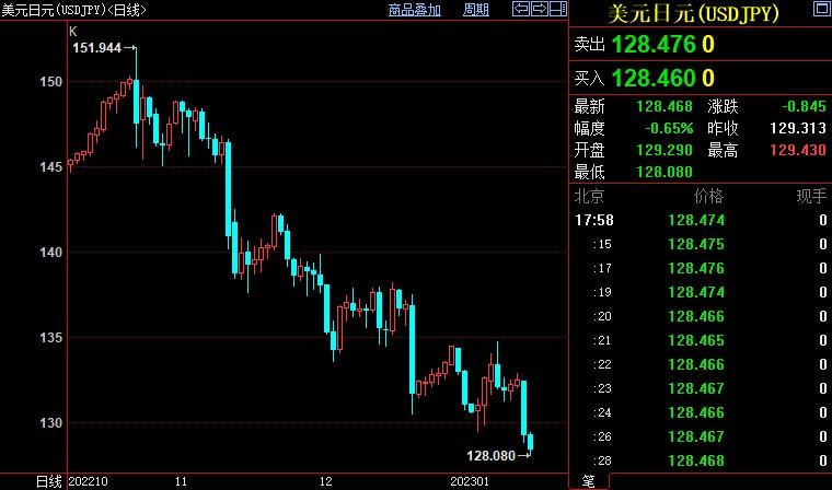日元因此表现相当强势。此外有报导指出,日本央行将在下周政策会议上评估其宽松货币政策带来的副作用,并可能采取额外措施来纠正收益率曲线控制政策所造成的市场扭曲。而本周公布的数据显示,东京地区12月核心CPI创下40年以来最大涨幅,这让市场揣测日本央行可能在下周会议进一步调整政策以逐步退出大规模刺激措施。美元兑日元本周铁定收于130整数关口下方,并一度触及七个月最低位128.102。