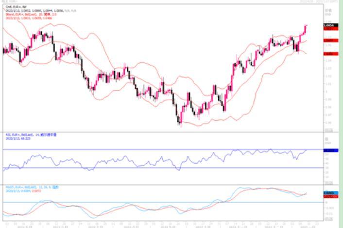 周四(1月12日),欧元兑美元升至近九个月高点1.0867,最后报收于1.0852水位,当日升幅0.83%。周四市场最为关注的美国12月份CPI数据出炉,数据显示,12月消费者价格指数(CPI)环比下滑0.1%,这是自2020年5月以来该数据首次下滑。美联储这轮自1980年代以来最快的货币政策紧缩周期抑制了需求,加之供应链瓶颈得到缓解,价格压力正在消退。BMO?Capital?Markets高级经济学家说:“核心通胀年率连续三个月下降开始形成一种趋势......这种趋势可能刺激美联储在2月1日进一步放缓紧缩步伐?!币虼耸莩雎竺涝彼傧碌?,一众非美货币齐齐走升。与之相对应的,欧洲央行官员继续发出的鹰派信息,周三有四位官员呼吁继续上调利率,欧央行坚定的加息态度也给予了欧元相应的支持。早日线图上,欧元兑美元已突破近期横盘上沿的强阻力水平1.08,各类技术指标均呈上扬态势,显示欧元多头力量强盛。接下来该货币对料将进入逢低遇买盘支撑的交易节奏中,上方进一步前进的目标将是上年第一季度所处价格区域1.10-1.12之间。下方初步支撑在1.0710,更强的支撑在1.0660附近。