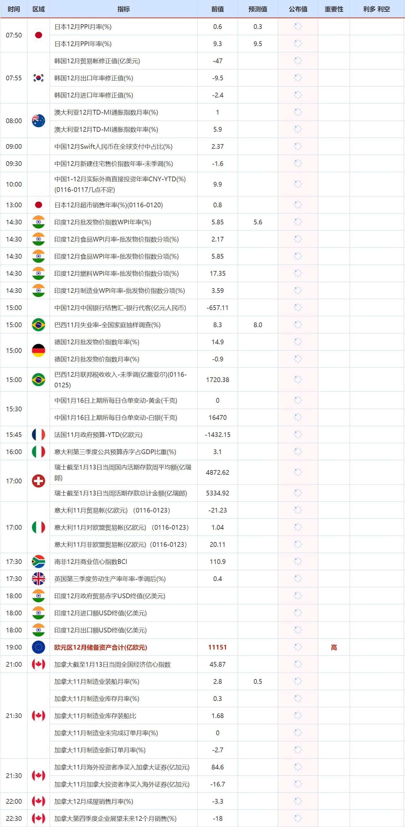 07:50?日本12月PPI年率(%)?,?前值?9.3?,?预期值?9.5?,?公布值:待发布