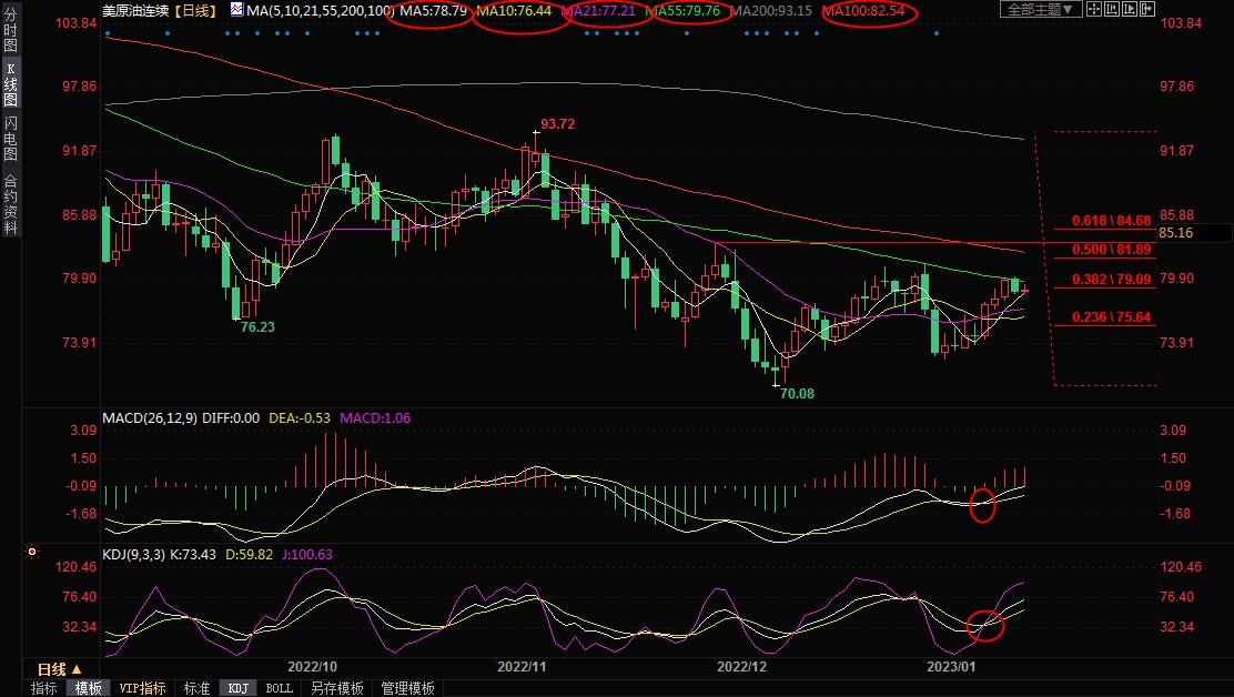 下方初步支撑在5日均线78.80附近,21日均线支撑在77.21附近,10日均线支撑在76.44附近,若失守该支撑,则增加短线看空信号;1月10日低点支撑在73.82附近,1月5日低点支撑在72.44附近。