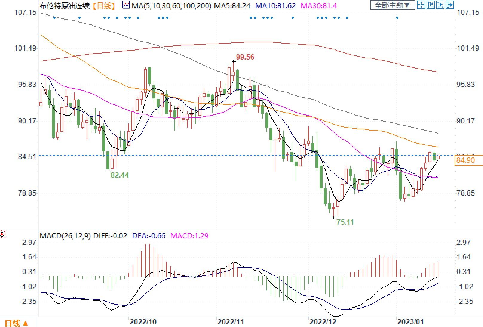 北京时间1月17日15:03,布伦特原油连续报84.80美元/桶