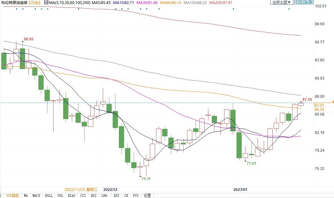 北京时间1月18日14:20,布伦特原油主力合约价格报86.94美元/桶?