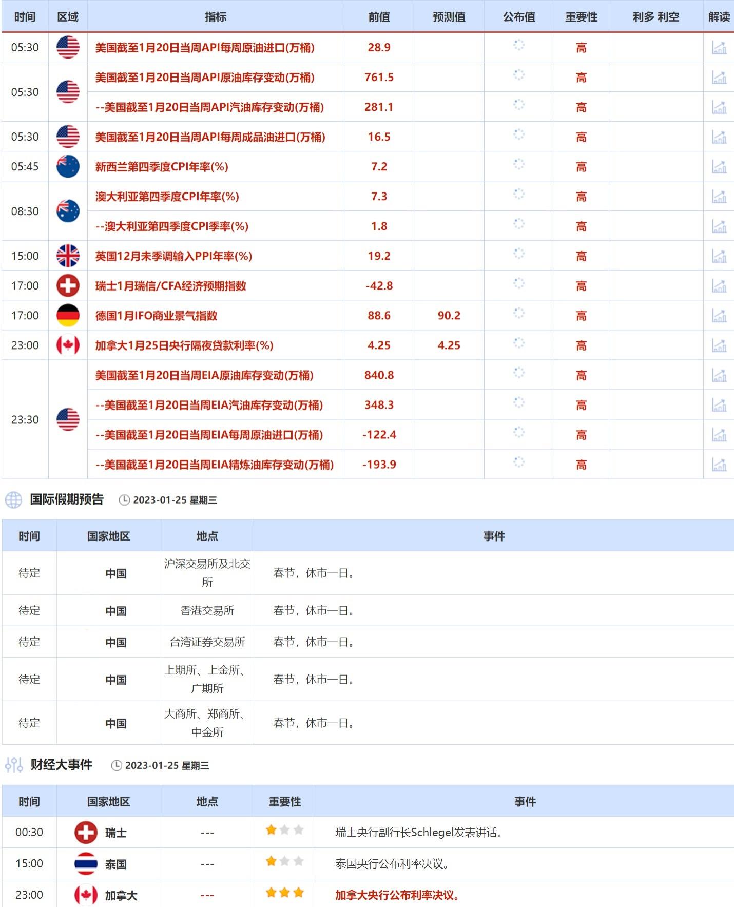 ③1月25日(周三)关键字:加拿大央行利率决议,美国API和EIA原油库存变动?