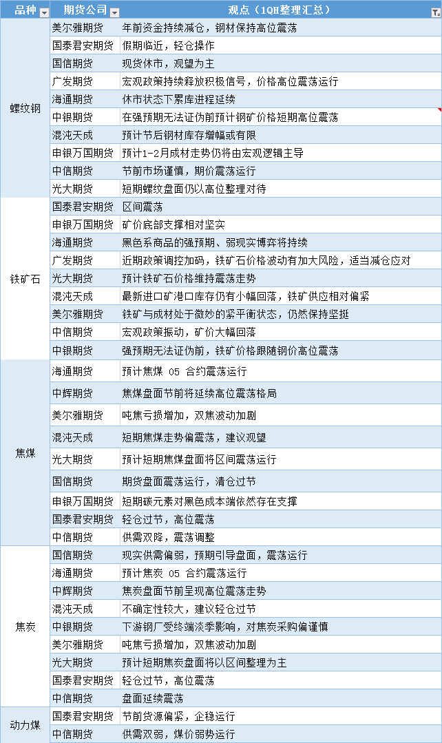 标题:期货公司观点汇总一张图:1月20日黑色系(螺纹钢、焦煤、焦炭、铁矿石、动力煤等)