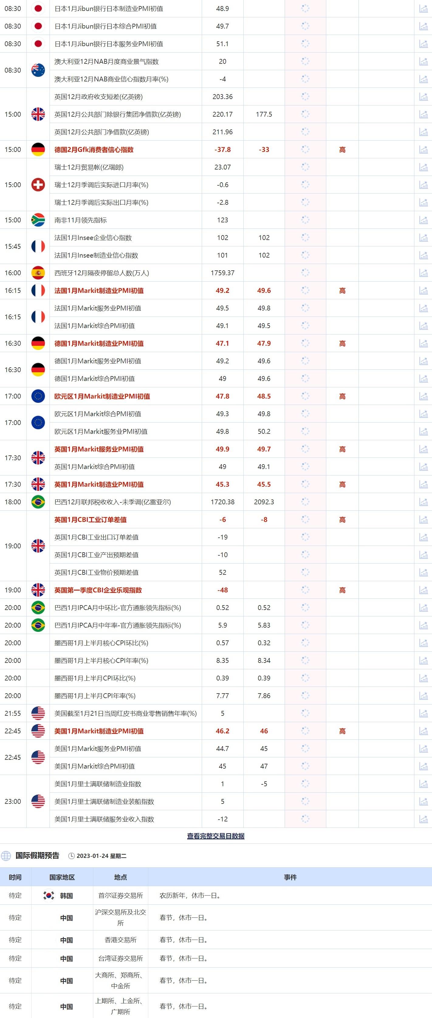 1月24日重点数据和大事件前瞻
