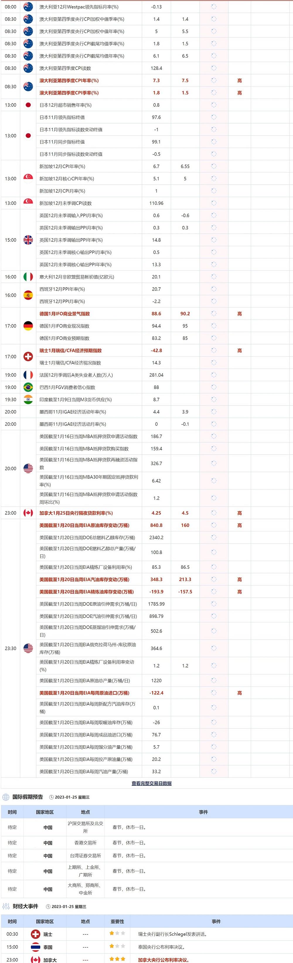 08:30?澳大利亚第四季度CPI年率(%)?,?前值?7.3?,?预期值?7.5?,?公布值:待发布