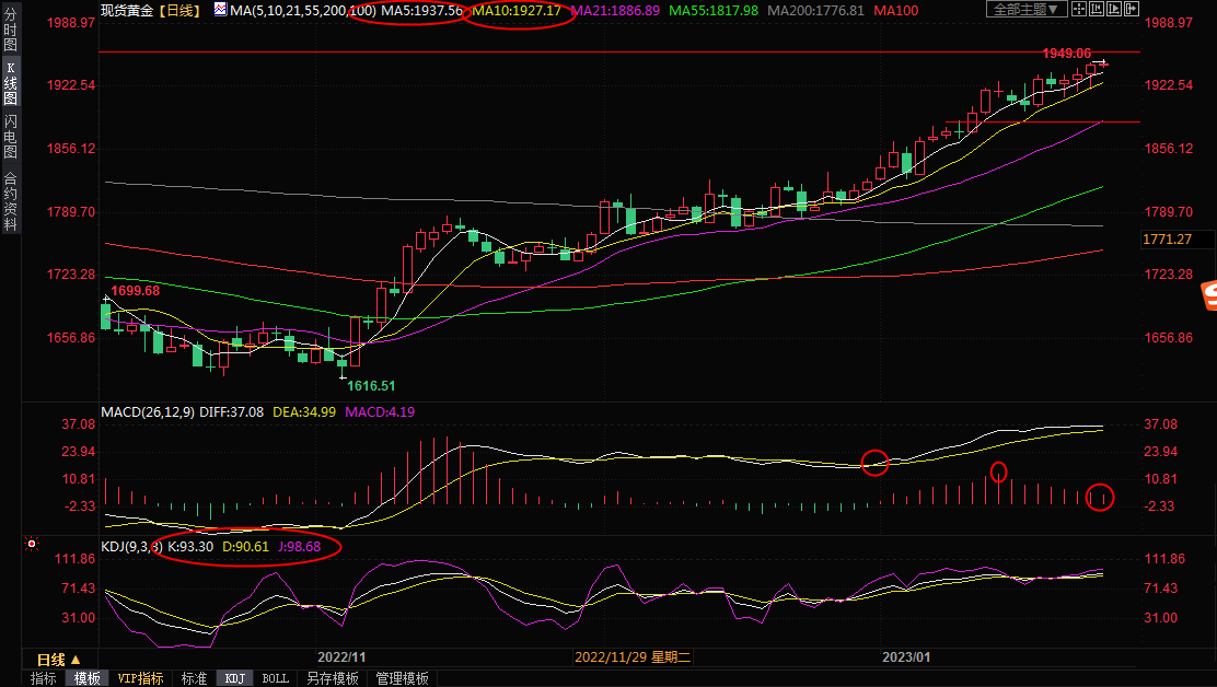 鉴于市场对美联储放缓加息步伐的预期居高不下,对暂停加息的预期也有所升温,美元指数维持弱势,美债收益率下跌,央行增加黄金购买,都给金价提供支撑,金价后市存在进一步冲高机会。而且,技术面来看,金价目前已经初步突破了1920关键位置,10日均线提供良好支撑,后市有望进一步试探4月20日高点1958.23附近阻力。