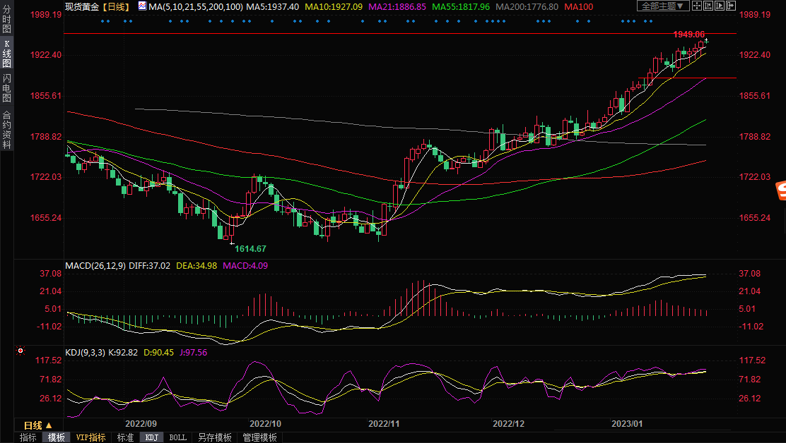 整体来看,俄乌地缘局势存在进一步升级的风险,市场对美联储放缓加息步伐的预期居高不下,对暂停加息的预期也有所升温,美元指数维持弱势,美债收益率下降,央行增加黄金购买,都给金价提供支撑,金价后市存在进一步冲高机会。而且,技术面来看,金价目前已经初步突破了1920关键位置,10日均线提供良好支撑,后市有望进一步试探4月20日高点1958.23附近阻力,也可以参考1960整数关口。