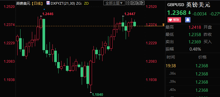 英镑兑美元在刷新去年6月上旬以来高点至1.2447后遇阻,目前下跌0.15%左右。围绕英国的消息良莠不齐,压低了该货币对的看涨倾向。英国财政大臣杰里米·亨特提振经济增长的意愿未能给英镑买家留下深刻印象。