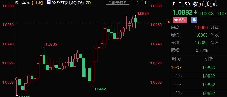 欧元兑美元上涨逾0.3%,盘中创去年4月下旬以来新高至1.0929。欧元区两大经济体德国和法国经济体年初以来下行势头有限,暗示经济衰退绝非已成定局,尽管企业仍对前景持谨慎态度。