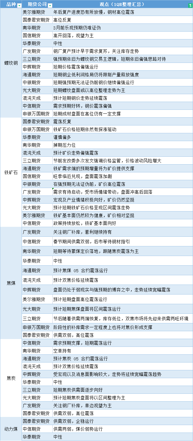 标题:期货公司观点汇总一张图:1月31日黑色系(螺纹钢、焦煤、焦炭、铁矿石、动力煤等)