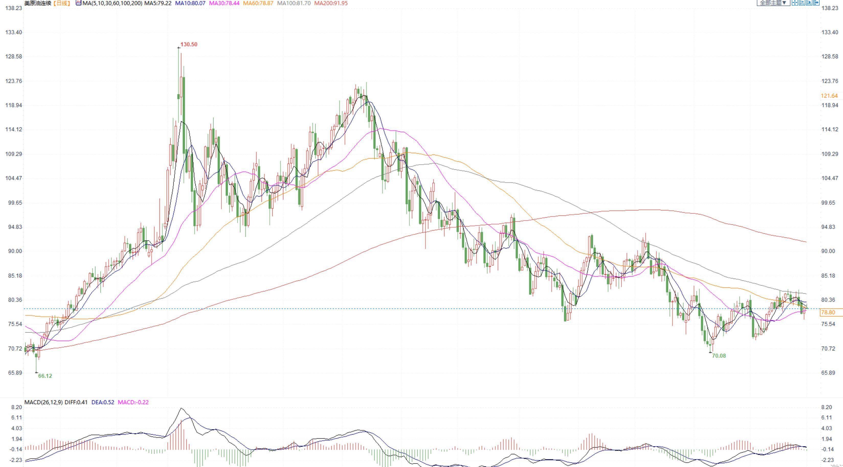 观点及建议:原油市场供应端的扰动较多,今日止跌企稳是由于欧佩克减产执行率较高。需求端目前多空分歧较大,美欧经济衰退预期再现,但中国需求逐渐恢复。目前原油已经止跌企稳,我们持有谨慎看多的观点。