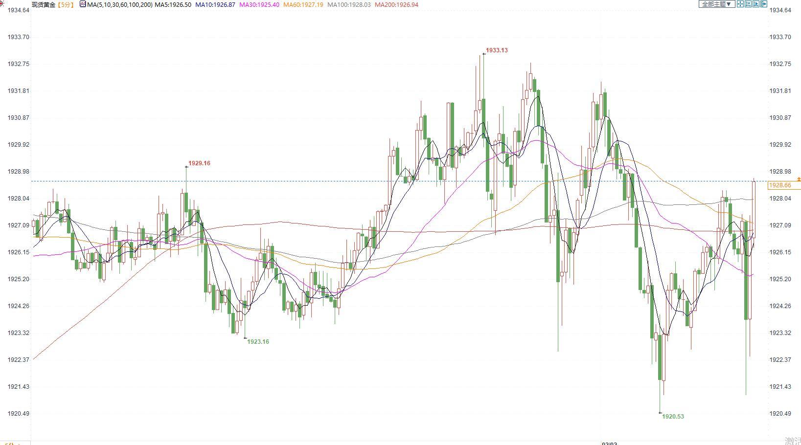 北京时间3:15,现货黄金报1926.50美元/盎司