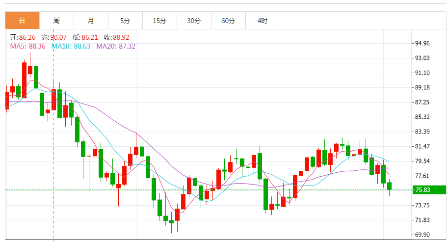 商品收盘情况:布伦特原油期货收于每桶82.17美元,下跌0.8%。美国原油收于每桶75.88美元,下跌0.7%。美国期金算价报1930.8美元,下跌0.6%。